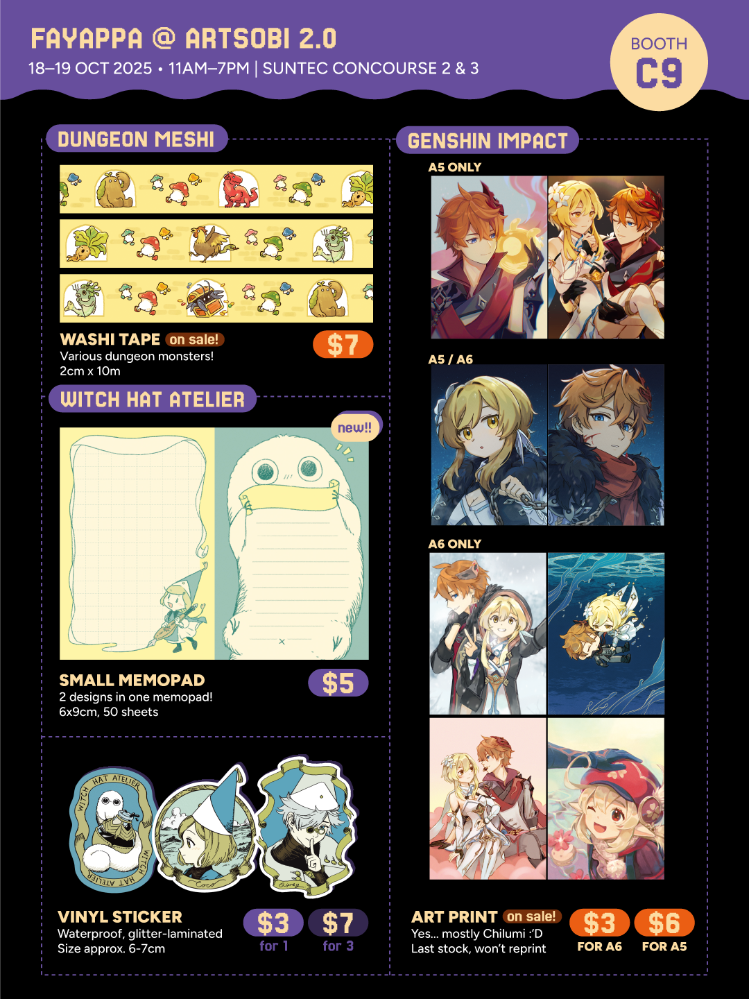 Tools: CLIP STUDIO PAINT, Procreate & traditional mediumsHello. I'm Fay, a freelance illustrator/2D game artist currently based in Singapore!In my free time, I enjoy drawing original characters, creating fan works of media that inspires me—or just doodle things from observation!Occasionally, I also design and sell merchandise at local art markets. My goal in the future is to create more original goods and share them with the world!Participated projects